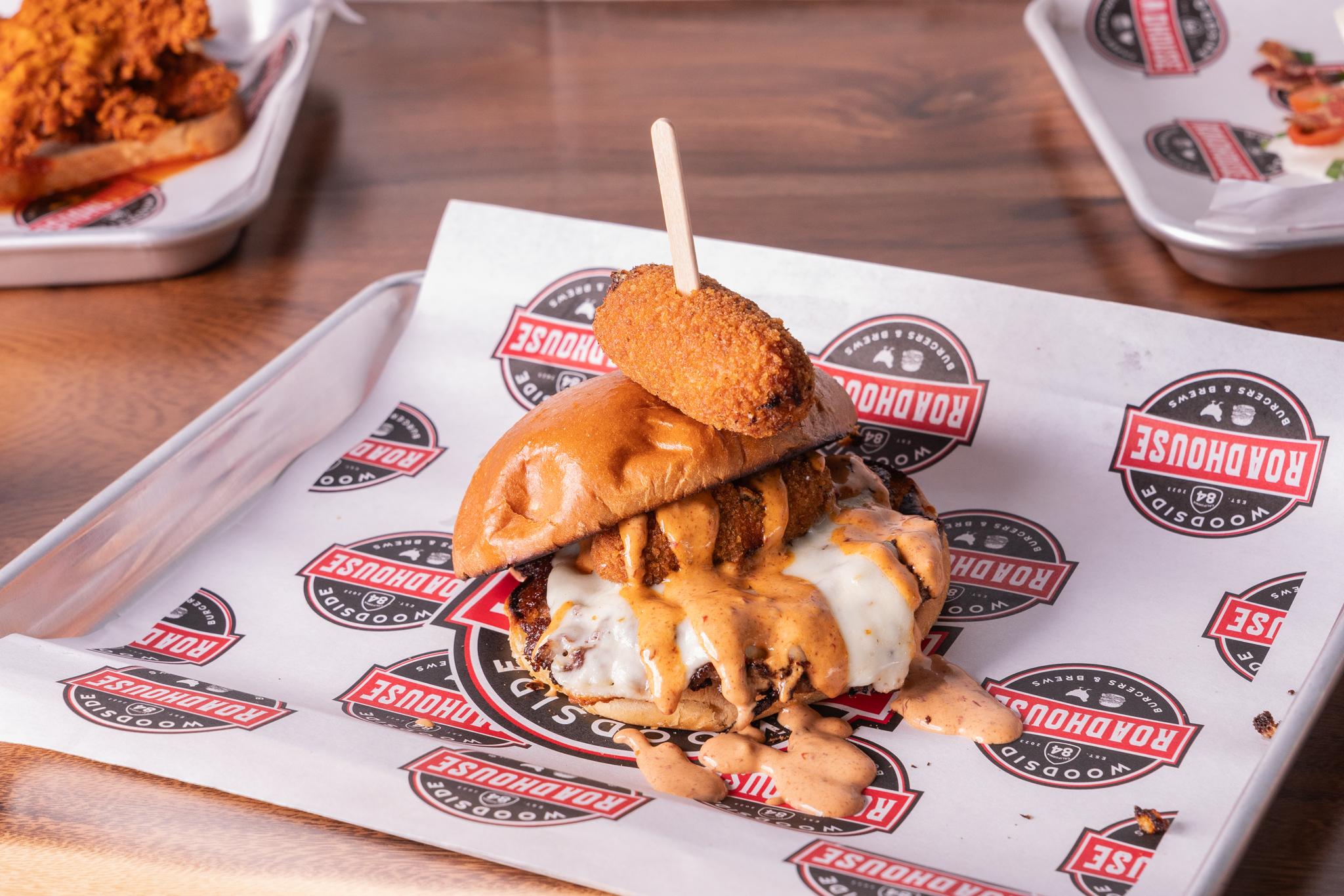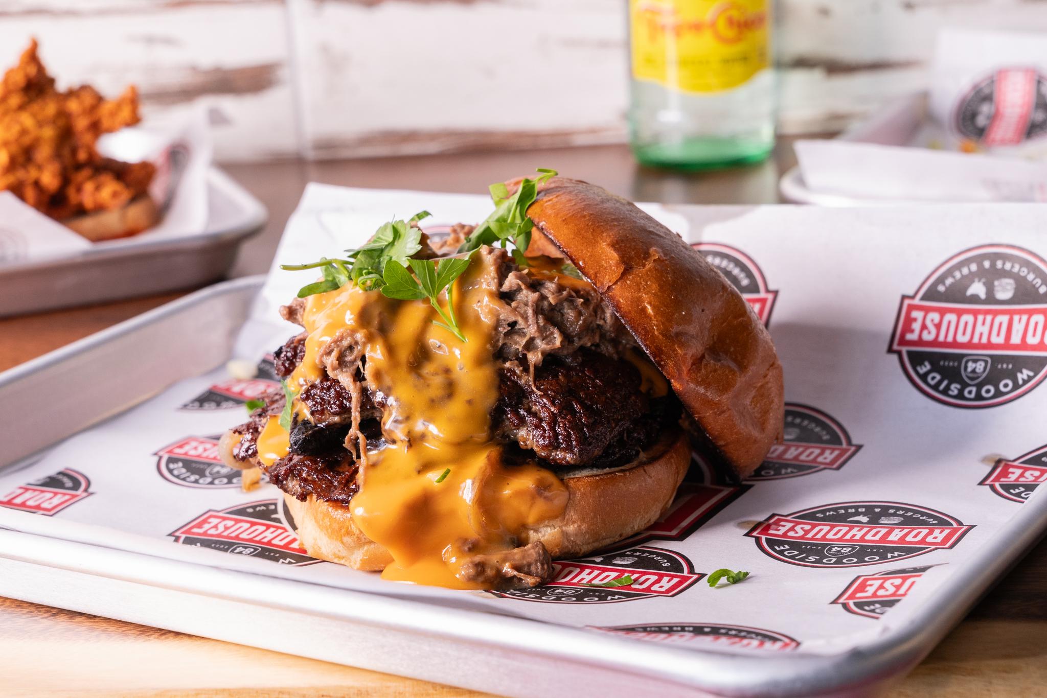 Double Smashed Patty, Grilled Onions, Whiskey Flamed Mushrooms, Pot Roast, Wisconsin Cheddar, Pickles