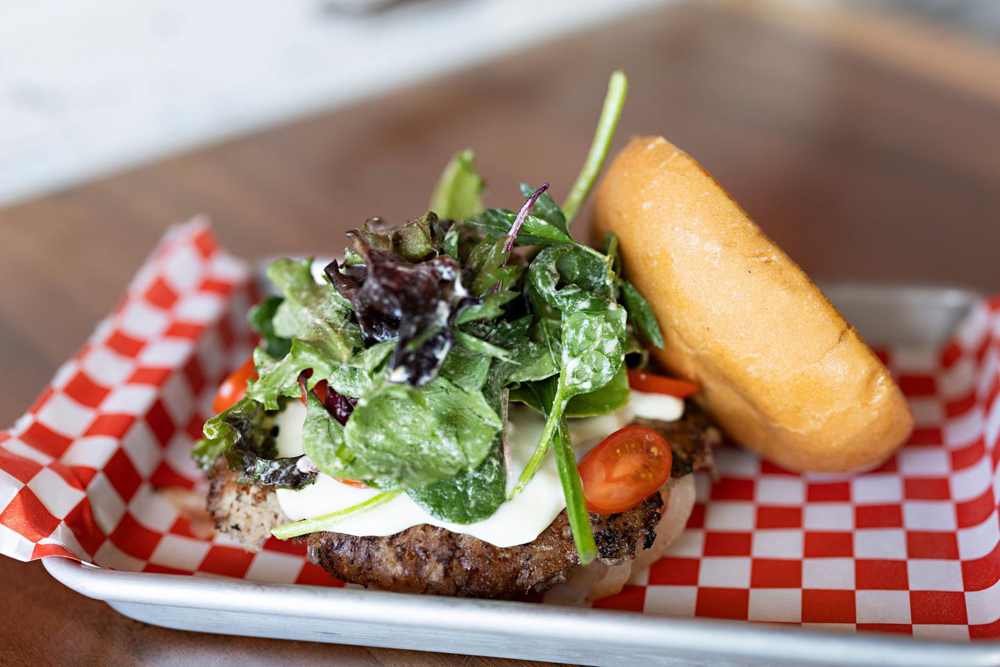 Smashed Turkey Patty, Grilled Onions,Goat Cheese, Arugula, Tomato, Dijon Mayo