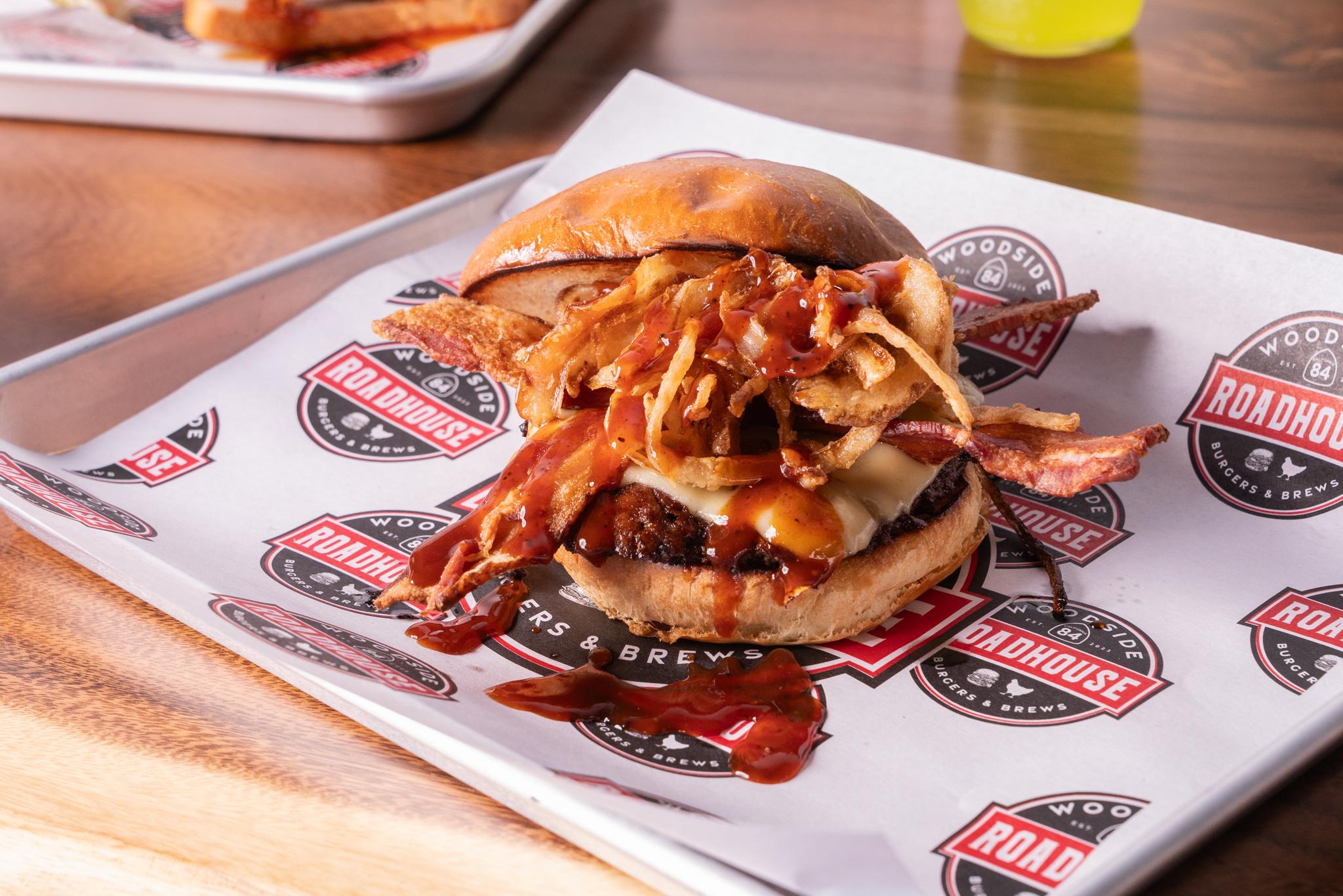 Smashed Patty, Grilled Onions, Swiss Cheese, Bacon, Brown Sugar BBQ sauce