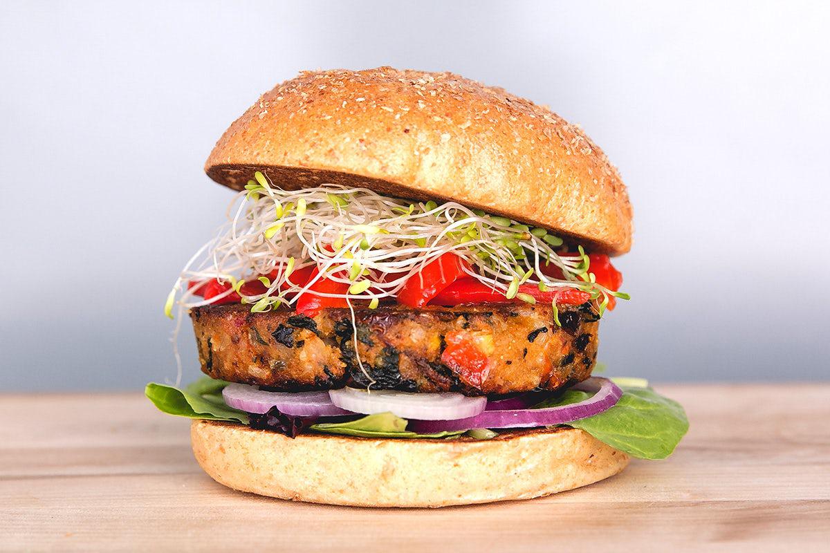 vegan veggie • organic mixed greens • red onions • roasted red peppers • alfalfa sprouts • dijon balsamic • multigrain bun