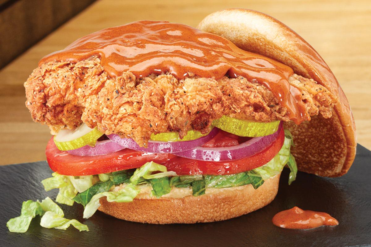 southern fried chicken • buttermilk brined • lettuce blend • tomatoes • red onions pickles • mayo • Nashville hot sauce • brioche bun