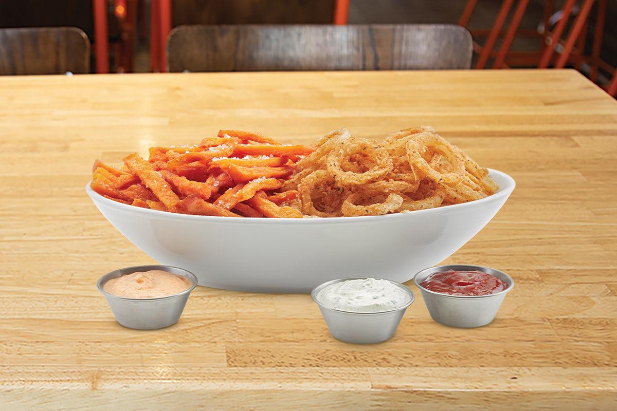 Enjoy our Classic Burger Bar! Select your choices of brioche or wheat buns and beef, chicken and Impossible™ proteins. Then sit back and relax while we complete your burger bar with all the toppings – american and cheddar cheeses, lettuce, tomato, red onion, pickles, garlic aioli, chipotle aioli, hickory bbq, mayo, mustard and ketchup. (Minimum order of 10) Calories per serving: Cheese 80-90 cal/Toppings 0-5 cal/Sauces 30-200 cal Looking for a customized catering package? Contact your local restaurant for additional catering options.